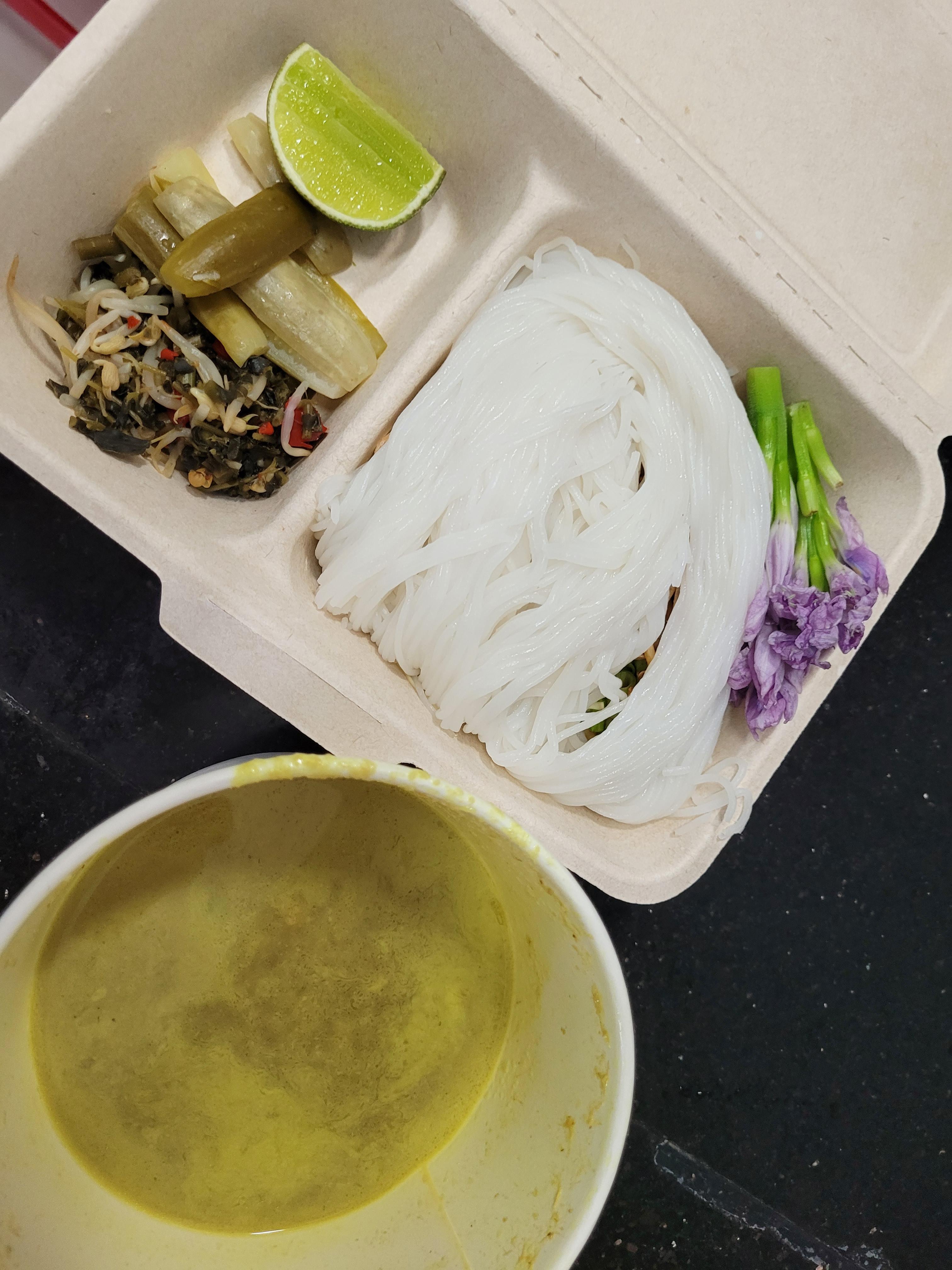 포장되어 온 생선 커리 쌀국수 놈반쪽
